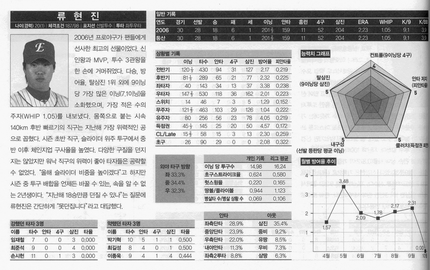 투수 중엔 류현진이 꽉찬 오각형에 가장 가까웠고,
